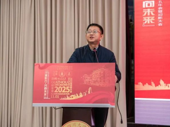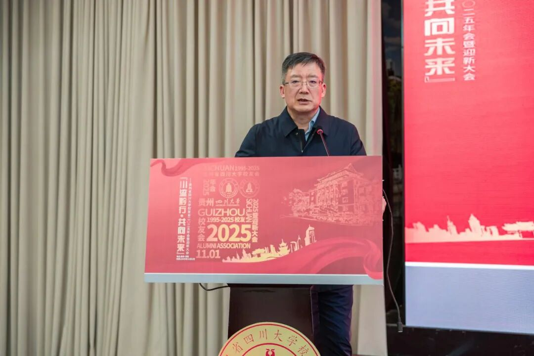 他对贵州校友会在凝聚校友力量、积极服务社会方面所做出的积极贡献给予了高度评价。他强调,校友会作为学校与校友之间沟通联系的桥梁纽带,应持续加强校友与学校之间的紧密联系与团结协作,全力促进校友企业与学校学术资源的深度融合与高效对接。他表示,希望广大校友企业能够进一步深化与母校的合作,携手为国家和地区的高质量发展添砖加瓦、贡献力量。他指出,川大是全体师生与校友共同的精神家园,母校将永远作为校友们最坚实的后盾,期待与大家并肩同行,共同开创更加辉煌灿烂的未来。
