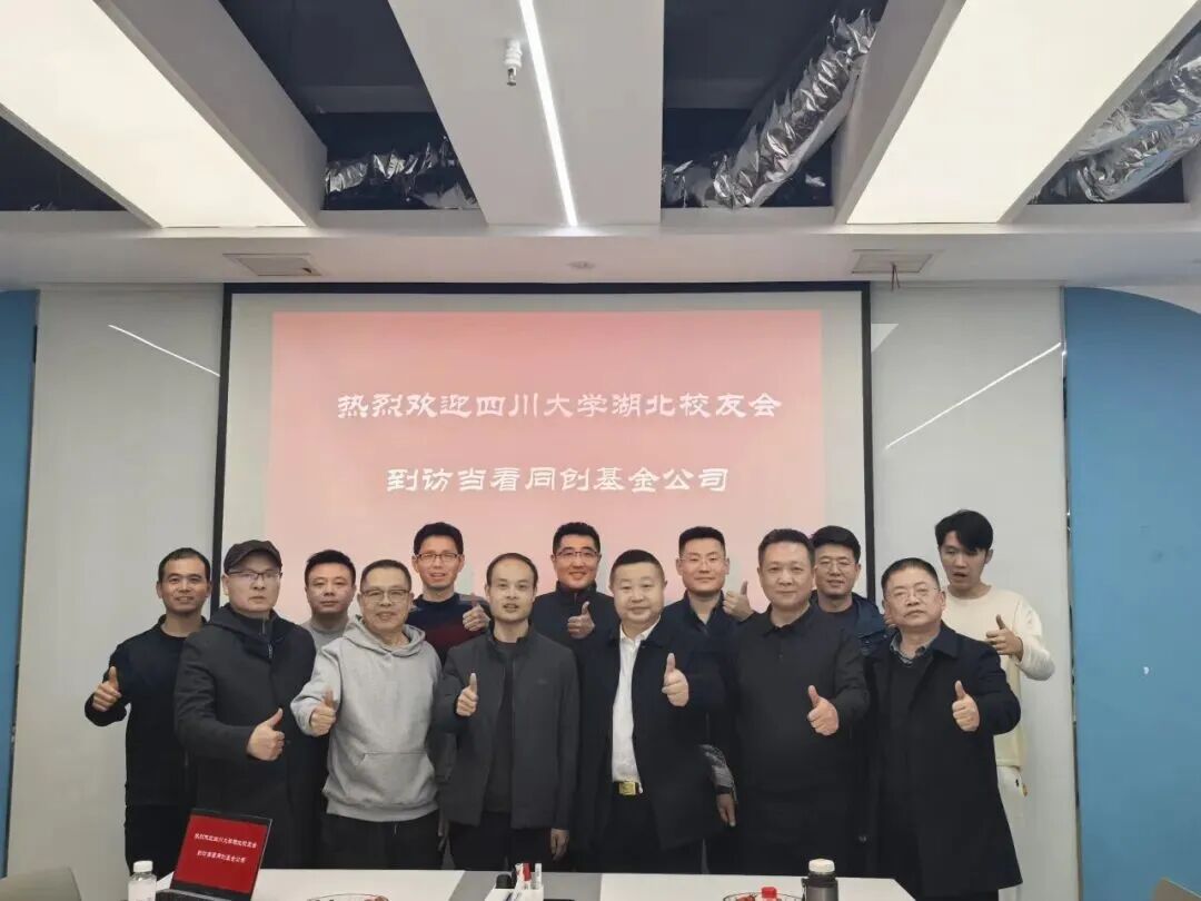 2026年1月9日,四川大学湖北校友会会长皮亚斌、执行会长黄美珠,副会长兼秘书长刘飞平,副会长任君、陈礼旺、田圣斌、王德静,副秘书长李海洋、赵衍霖,理事王国良、袁勇及河北校友赵哲一行十余人,专程走访校友企业——湖北当看同创私募基金管理有限公司,与公司基金管理合伙人、川大校友张坤展开深度交流,共叙校友情谊,共探合作前景。