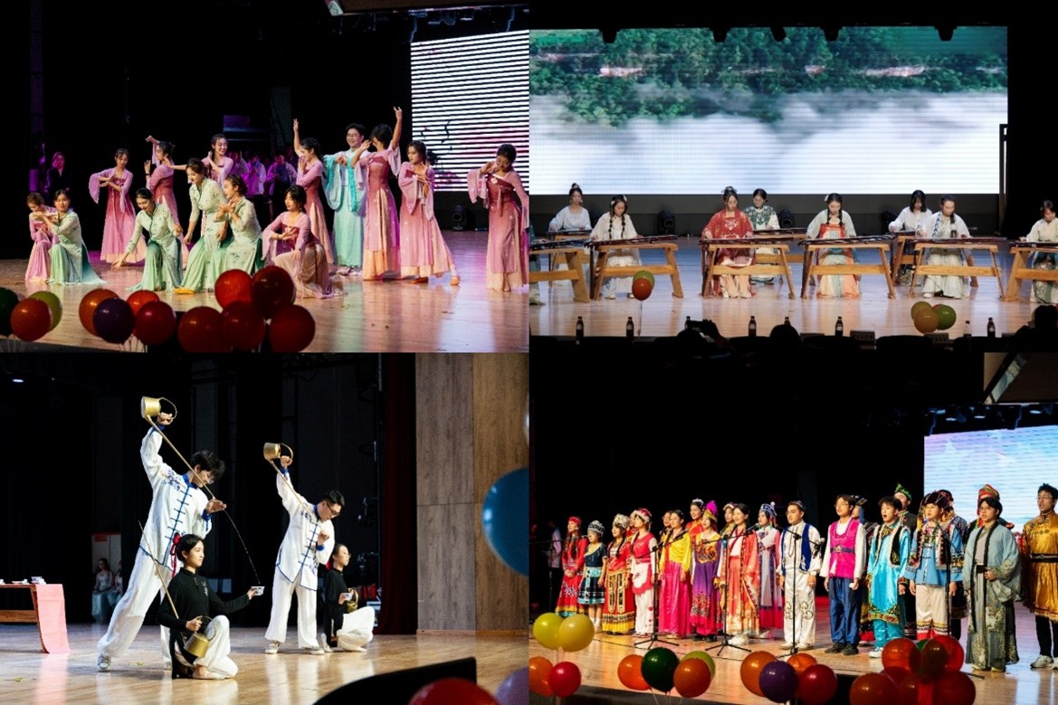 传统器乐与声乐篇章同样精彩迭出。古琴演奏空灵悠远,竹笛旋律悠扬婉转,24式太极拳表演沉稳舒展,每一个动作、每一段旋律都传递着中华传统文化的平和与力量;江安声乐班带来的合唱《明天会更好》,以清亮歌声寄托对未来的美好期许。此外,展演更融入多元现代元素:中外学员携手演绎的英语合唱《Heal the World》传递跨文化温情,街舞表演的动感节奏、吉他弹唱的青春旋律、小提琴演奏的动人乐章,尽显学员们宽广的艺术视野与多元创造力,完美诠释“传统为根、现代为翼”的美育理念。