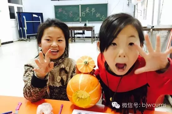 何晓玲校友和学生共同完成万圣节南瓜手工作品