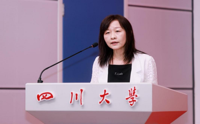 经济学院党委书记熊兰向参与学院120周年庆祝大会的嘉宾和校友表达了祝福与感谢,她回顾了川大经济学院走过的120周年辉煌历程,并向为经济学院发展做出贡献的校友表示致敬。