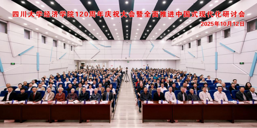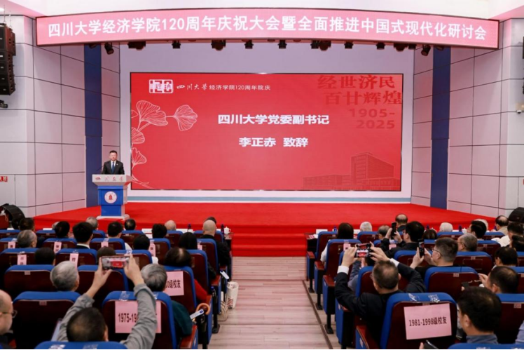 2025年10月12日,四川大学经济学院120周年庆祝大会暨全面推进中国式现代化研讨会在四川大学望江校区隆重举行。四川大学党委副书记李正赤,学校相关部门领导、兄弟学院代表,以及来自海内外的校友、师生代表共计300余人齐聚一堂,共襄盛典,擘画未来。