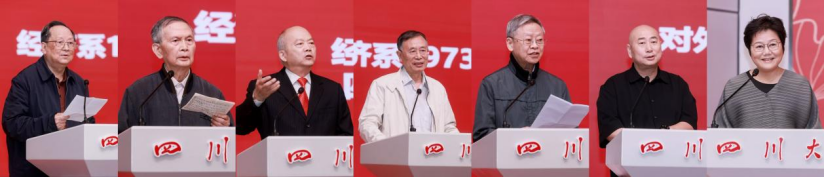 庆祝大会举行了“传承百廿荣光”与“共铸经院辉煌”两场主题发言,并向捐赠校友代表颁发捐赠纪念证书。“传承百廿荣光”主题发言由学院原常务副院长朱方明主持,1960级校友、四川省原副省长王恒丰,1956级校友、经济学院原经管系主任廖君沛,1979级校友、经济学院原院长、四川大学原副校长、重庆工商大学原校长杨继瑞,1973级校友、经济学院原党委书记、原院长李天德,经济学院原党委书记游光中,1989级校友、四川大学上海校友会会长王钢,1993级校友、奥运冠军张山等嘉宾讲述了自己在经济学院的求学经历、奋斗历程和人生感悟。“共铸经院辉煌”主题发言由学院原党委书记陶宏主持,1984级校友、原摩根大通执行董事黄树东,2012级校友、贵州省都匀军分区大校政治委员王文建,2017级校友、元始智能科技(南通)有限公司总裁刘遥,2001级校友、香天下联合创始人王一,2006级校友、中央党校(国家行政学院)副教授、国家高层次人才特殊支持计划青年人才张雪琴,学院经管与财税系教授周沂,金融系2024级博士生符旭等7名嘉宾代表分享了自身成长历程和对学院未来发展的期望,表达了对母院的深厚情感。