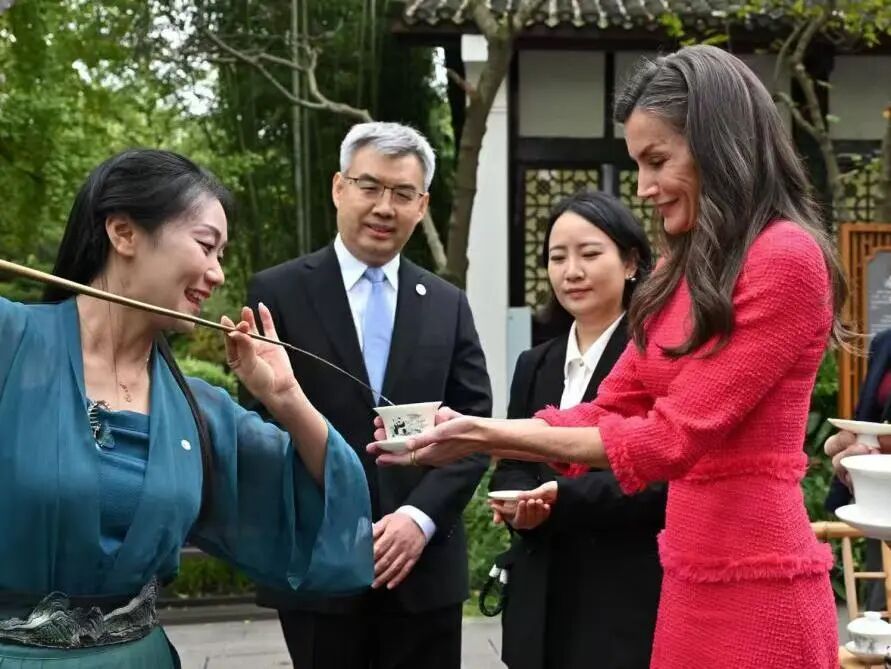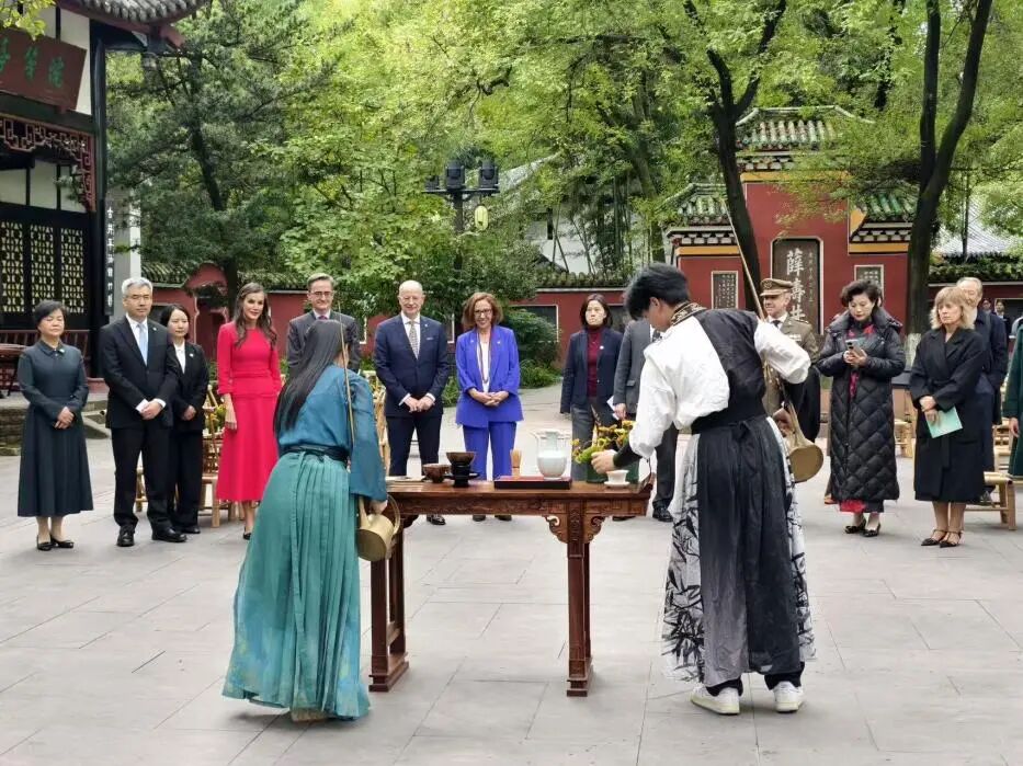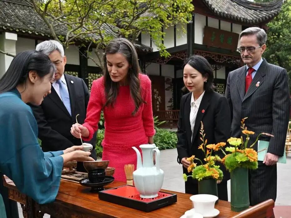 11月11日上午,位于四川大学望江校区旁的望江楼公园内古韵流淌,西班牙王后莱蒂西娅在出席西班牙诗人安东尼奥·马查多诞辰150周年纪念活动后,于锦江畔开启中国传统茶文化之旅,感受四川非遗魅力。