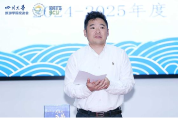 下半场的校友会常务理事会环节,四川大学旅游学院秘书长王俊鸿全面汇报了2024-2025年度工作成果。