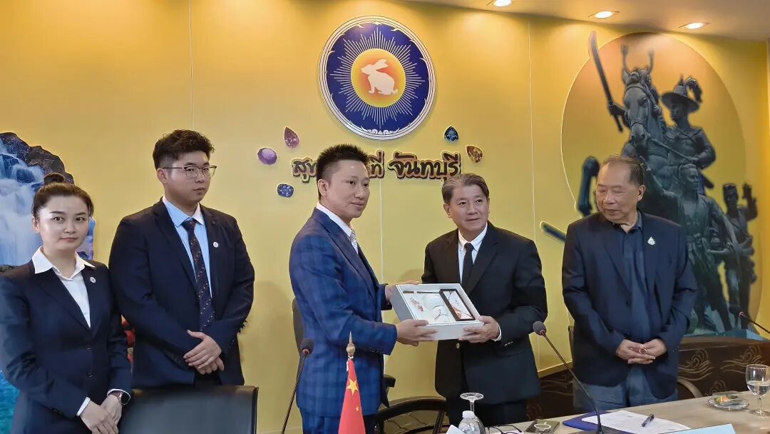 11月26日至27日,代表团前往春武里府及尖竹汶府考察。尖竹汶府府尹蒙实主持欢迎晚宴及正式会谈,双方就榴莲标准化种植、宝石产业链升级、无人机农业应用等具体项目交换意见,为地方合作奠定基础。