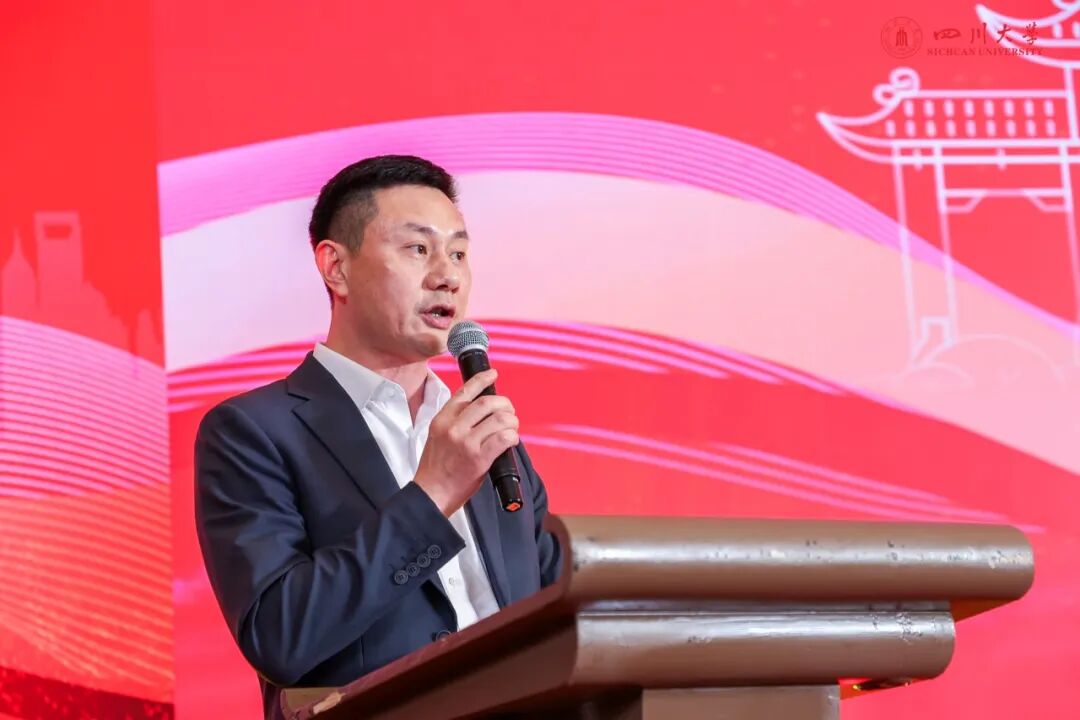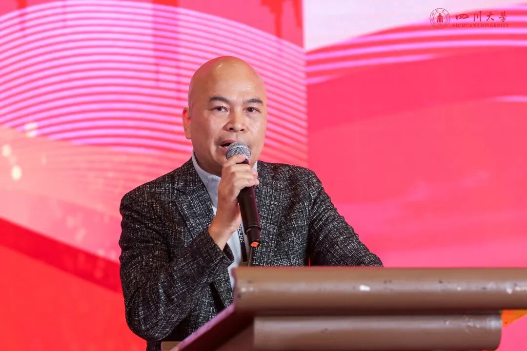 嘉宾致辞环节温情与期许交织。四川大学广州校友会会长张春旺发表致辞并作校友会工作报告,系统回顾了校友会二十年来“凝聚校友、服务母校、共促发展”的奋斗历程与丰硕成果。他表示,未来将继续凝聚校友力量,搭建更广阔的交流平台,让川大精神在南粤大地薪火相传。