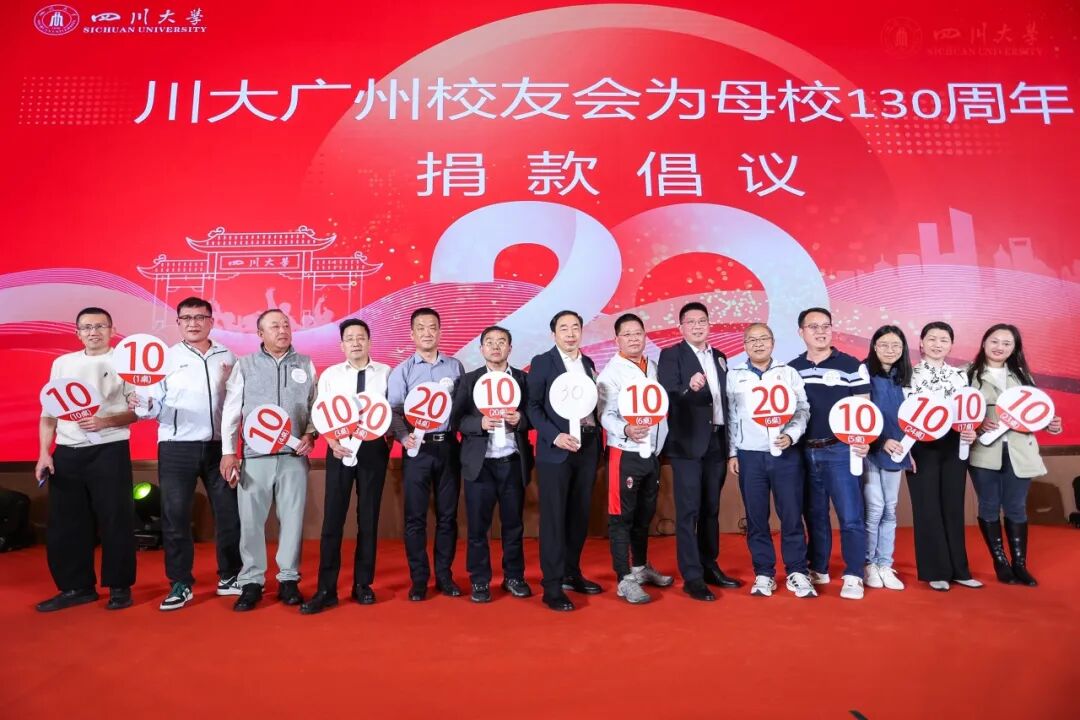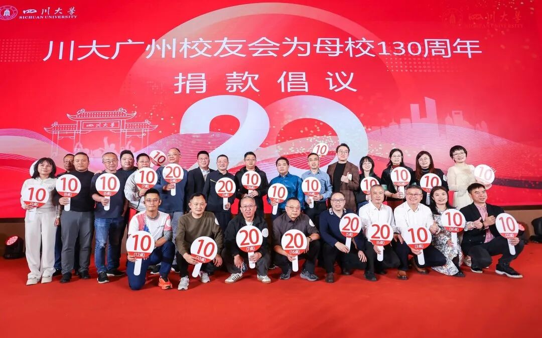 晚会的重磅环节,是庆祝四川大学130周年广州分会场启动仪式。主持人宣读《祝福母校建校130周年献礼捐赠活动倡议书》,号召在粤校友以 “百卅之数” 献礼母校,款项将用于点亮广州塔祝福、修葺图书馆设施、捐赠雕像传递爱校情谊等公益项目。