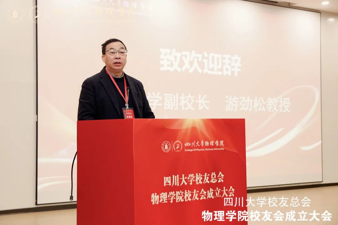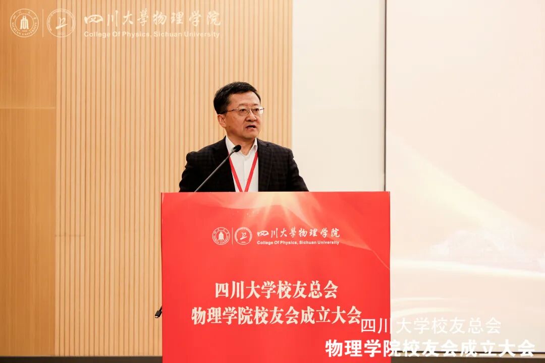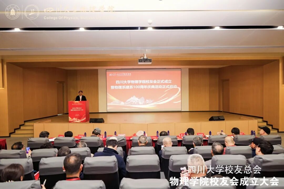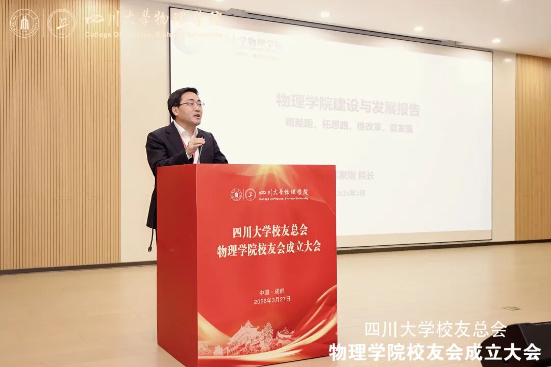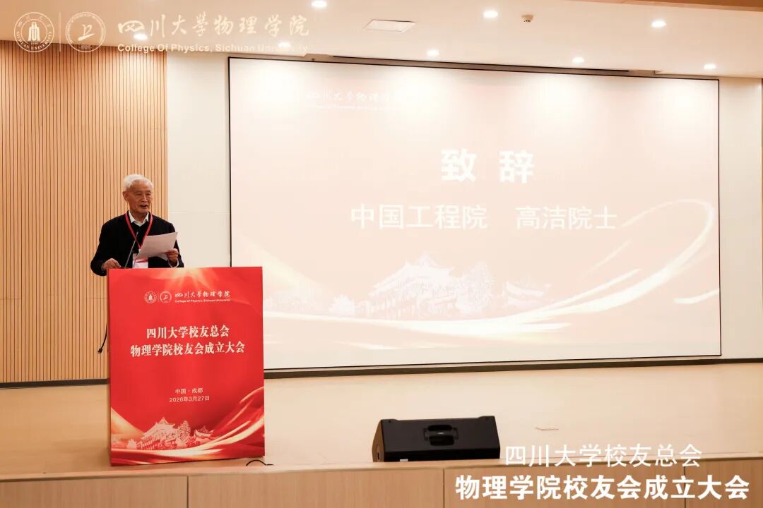 2026年3月27日,四川大学校友总会物理学院校友会成立大会在四川大学举行。2026年恰逢四川大学建校130周年、物理系建系100周年,本次大会是物理学院回顾百年办学辉煌、凝聚校友力量、共谋未来发展的重要盛会。中国工程院院士高洁,中国科学院院士赵红卫,四川大学副校长游劲松,四川大学校友总会秘书长杨光,四川大学物理学院党委书记严成辉,物理学院院长吴家刚等领导嘉宾,以及来自全国各地的政界、学界、企业界校友代表齐聚一堂,共同见证这一历史性时刻。